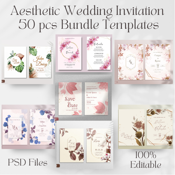 WEDDING INVITATION BUNDLE TEMPLATES (50PCS Templates)