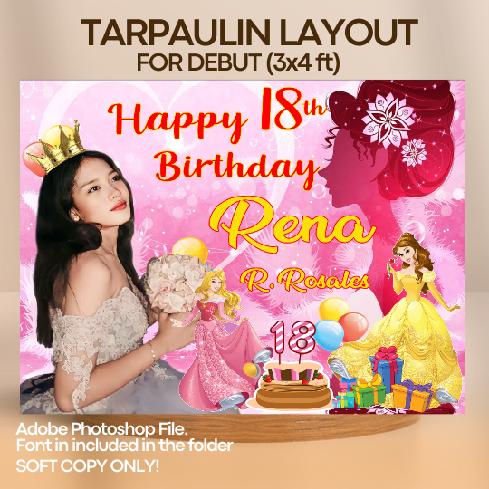 Tarpaulin layout for debut. File is Adobe Photoshop file.